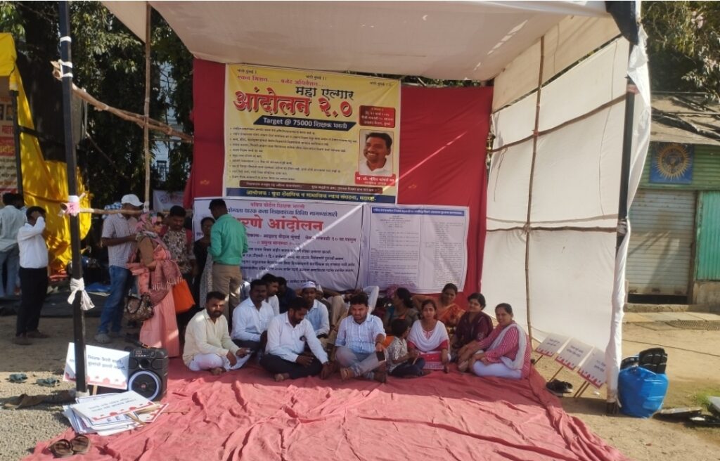 विशेष प्रतिनिधी आझाद मैदान मुंबई – सुशिक्षित बेरोजगार तरुणाच्या समस्या आपण नेहमी वाचतो. पण राज्यात मोठ्या प्रमाणात शिक्षक आहेत. त्यांची शासनाच्या पवित्र पोर्टल वर नांव नोंदणी झाली आहे. तरी त्यांना न्याय मिळत नाही.मुंबईच्या आझाद मैदानात अधिवेशनाच्या काळात अनेक संघटना न्याय मिळविण्यासाठी धरणा आंदोलन करतात. पण त्यांचे निवेदन घेऊन आश्वसना शिवाय त्यांच्या पदरी काय पडत नाही.